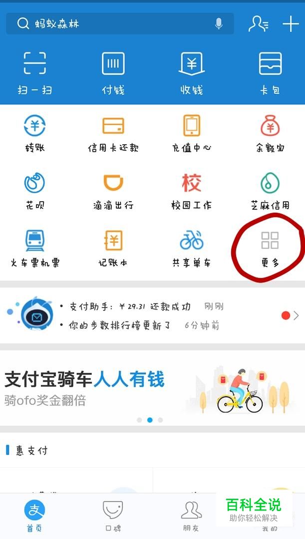 点开手机上支付宝APP,登录自己的支付宝号,进入以下界面。