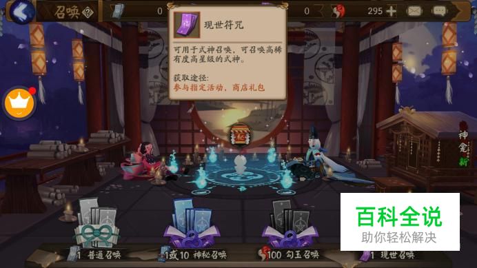 阴阳师的现世符咒是在蓝符和勾玉之后出现的一种全新的召唤式神的道具,可用于召唤式神。
