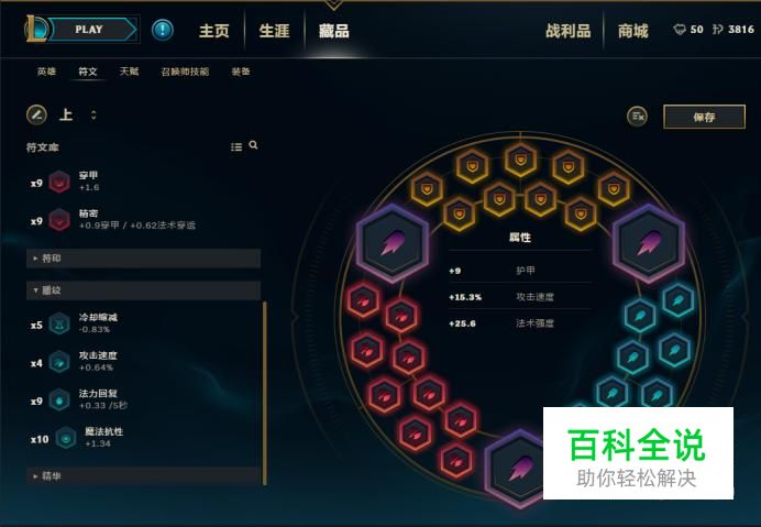 符文的选择,小编选用的是3个大精华是攻击速度,红色印记9个攻击力,黄色符印9个护甲,蓝色雕纹9个魔法抗性。比较好的提升了攻速以及攻击力,是非常适合ADC位置寒冰射手的一套标准符文。