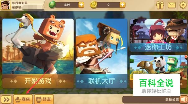 进入游戏后首先点击“商店”按键(位于主页的左下角)。