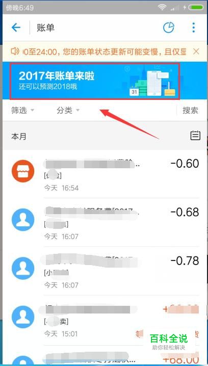 点击后进入页面后会在顶部看到有一个“2017帐单来啦 你还可以预测2018哦”,点击它进入帐单页。