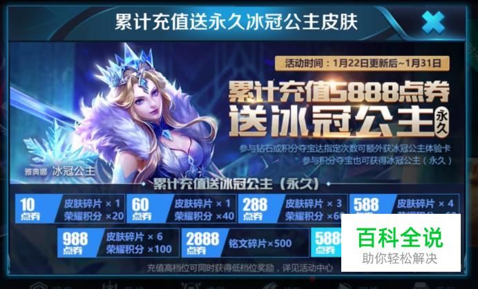 同时累计充值5888点券送冰冠公主(永久)
