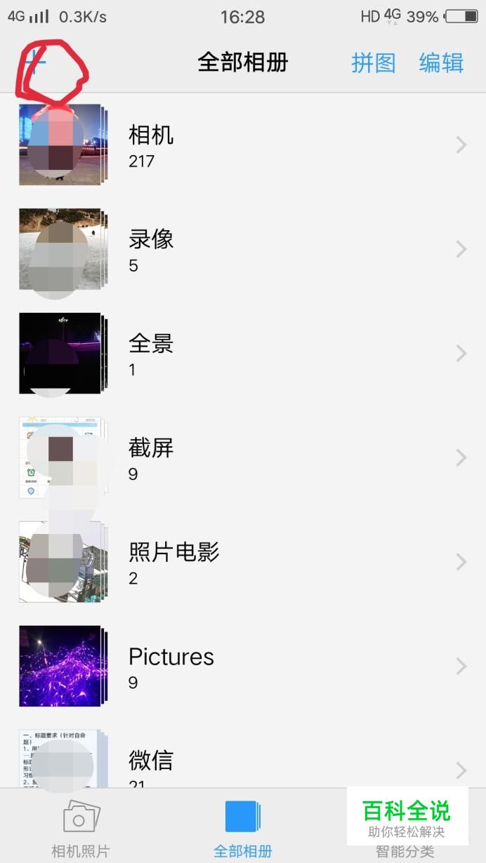 进入相册后,找到全部相册,这是在左上角有个加号点开进入;