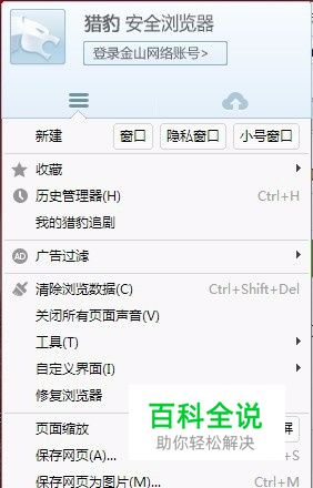 安装运行猎豹浏览器,点左上角豹子图标—猎豹应用市场。