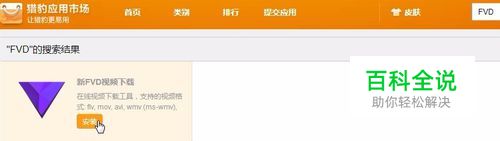 在网页右上方输入“FVD”回车,点安装—安装。