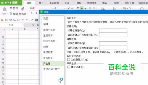 点击“WPS表格”(左上角)-“选项”-“安全性”设置打开权限密码和修改权限密码。就是这样简单易操作,感谢您的浏览
