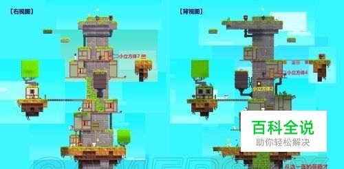 第一章 【村庄】 宝藏:钥匙×2 锁住的门:藏宝图×1 立方体:1 小立方体:8 【村庄通道】 此处只需旋转向上,沿路收集8个小立方体,就可以打开最上方有二筒图样的门。 【瀑布地带】 瀑布地带是各大关卡的必经之地,目前只有两个立方体(8个小立方体合成1个立方体),只能去第二章。