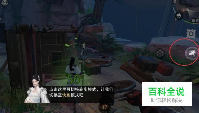 进入游戏后,画面右边有一个疾跑的标志,点击这个你就可以从走路切换到跑步了,再次点击就切换回来。