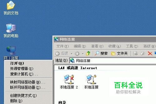 您首先使用远程桌面或PcAnywhere连接登陆到服务器,右键点击桌面“网上邻居”---属性,弹出“网络连接”窗口: