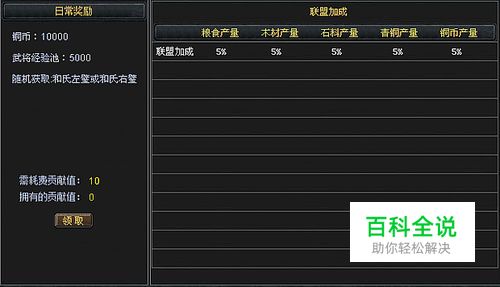 如何获得玉璧:每日服务器00:00:00重启后,玩家可以在联盟花费一定的贡献度领取联盟福利。福利中将随机获得一个——左璧或右璧。玩家获得左璧和右璧的几率完全相同,各为50%。