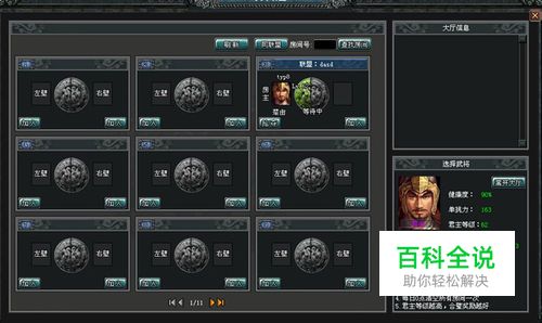 进入大厅——玩家自由进入合璧大厅,进入房间进行合璧。进入大厅前需要指定一名护法武将,可选名单为当前城池中的空闲武将。
