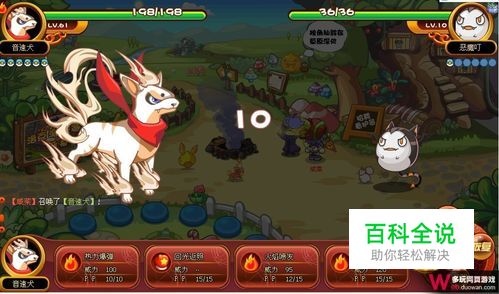 和黑衣人对话,进入战斗。他放出来的是10级的水晶犬,我们可以很轻松地击败它。