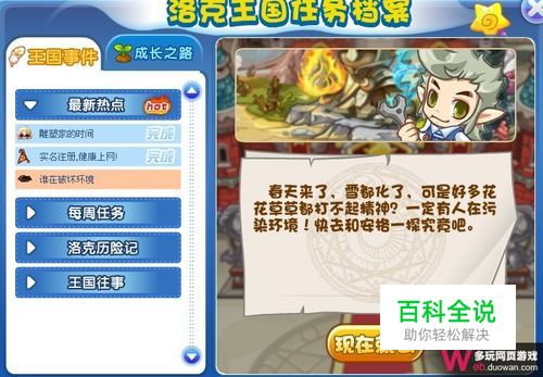 进入洛克王国,点击洛克王国任务档案,选择王国任务最新热点里的“谁破坏谁的环境”一栏,我们就可以看到本次任务的详细介绍。