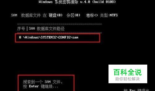 4、搜索到Sam文件后,按Enter键继续,如下图所示: