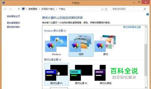 在主题列表中选择“高对比度主题”--“高对比度#1”;