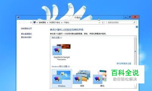 保持刚才的颜色和外观窗口不要关闭,重新在桌面上右键打开一个新的“个性化”设置窗口,并选中“Windows默认主题”,让系统重新换回正常主题;