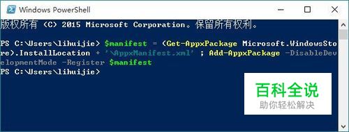 ② 针对Win10应用打不开的情况,请输入以下命令: Get-AppXPackage -AllUsers | Foreach {Add-AppxPackage -DisableDevelopmentMode -Register "$($_.InstallLocation)\AppXManifest.xml"}
