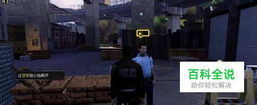 跟警察对话,谎称是爆破组然后伪装进入仓库。