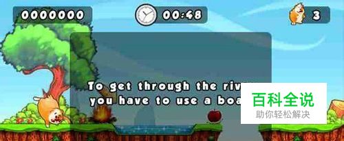 为了通过小河,你必须使用小船,右下角的图标左边第一个为小船,点小船,然后点击小河,即可设置好小船