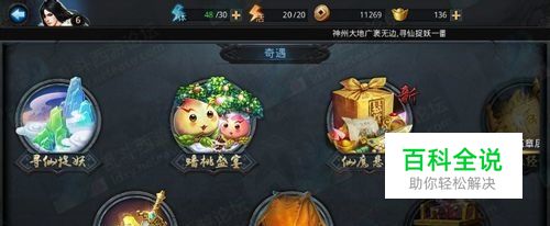 在游戏主界面选择“奇遇”,然后点击“仙魔悬赏”,如下图