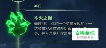 接下来我选择不灭 这个基石对于盖伦赖线能力会有一个飞跃。因为不灭能够使盖伦在消耗敌方英雄的时候,增加自身的生命,这是很强大的一个基石。
