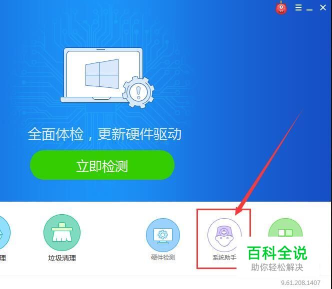 这里我以驱动精灵软件为例,打开驱动精灵软件主页面,选择“系统助手”选项。