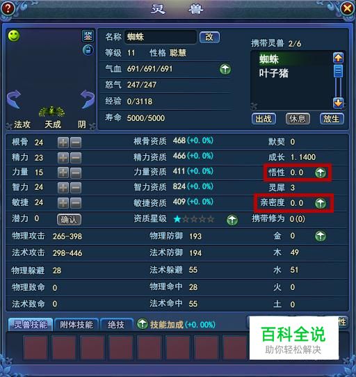 灵兽悟性提升,可以百分比提升灵兽的各项资质; 灵兽亲密度提升,可以提升灵兽附体技能的效果。 灵兽悟性和亲密度可以使用道具提升,最高升至10,亲密度不可大于悟性!