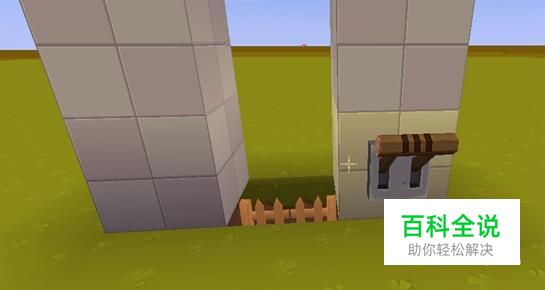接下来,在旁边的门框上安装一个开关。原理:栅栏高度一个格,但是用了两个格子,相当于在栅栏上方放了个空气块。通电时,栅栏就会打开。