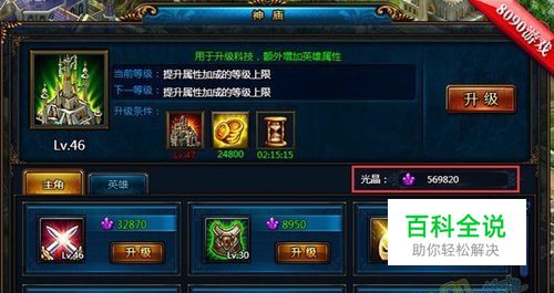 在游戏里,神庙是一个好地方,在这里玩家能提升所有英雄的自身属性,包括攻击,生命,防御,破击,格挡等属性,但是这些都是需要通过光晶来激活和升级的,我们只有保证足够的光晶才能完成升级