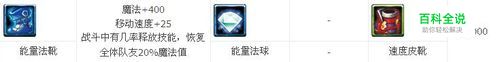 能量法靴 加魔法又加移速,这属性算是通用属性,每个英雄都能用。装备技能也是相当不错,战斗中有几率回复全体队友百分20%的魔法。建议队伍中肯定备一个,谁会闲魔法少呢