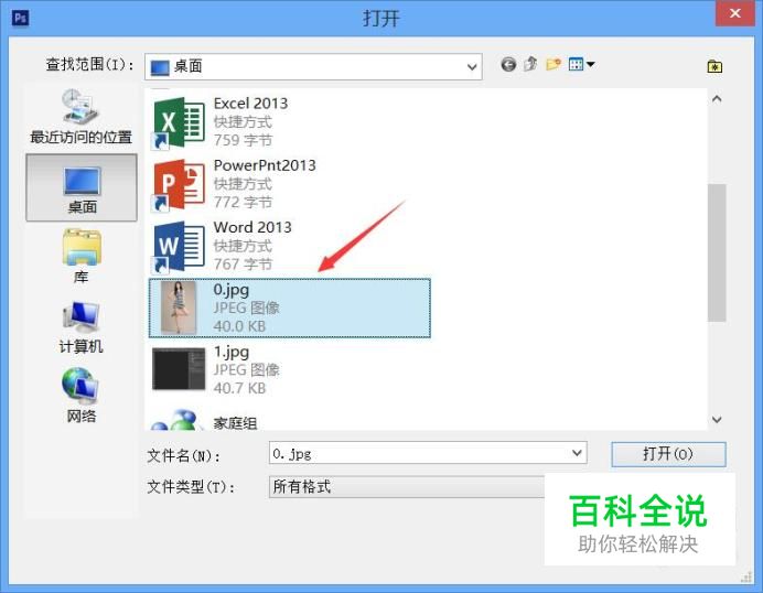 打开ps之后按下Ctrl+O键在弹出的打开对话框内找到我们的图片素材,如图所示: