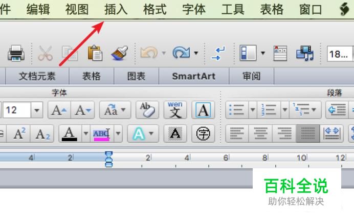 打开一个空白的word文档,点击菜单上的‘插入’