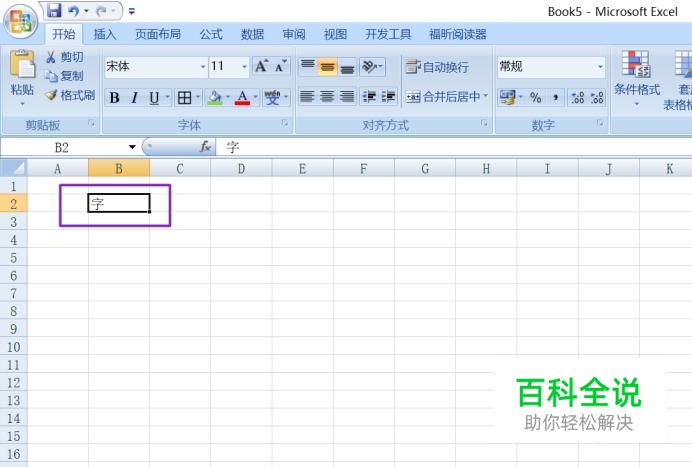 首先,我们点击打开Excel,然后在里面输入一个字;
