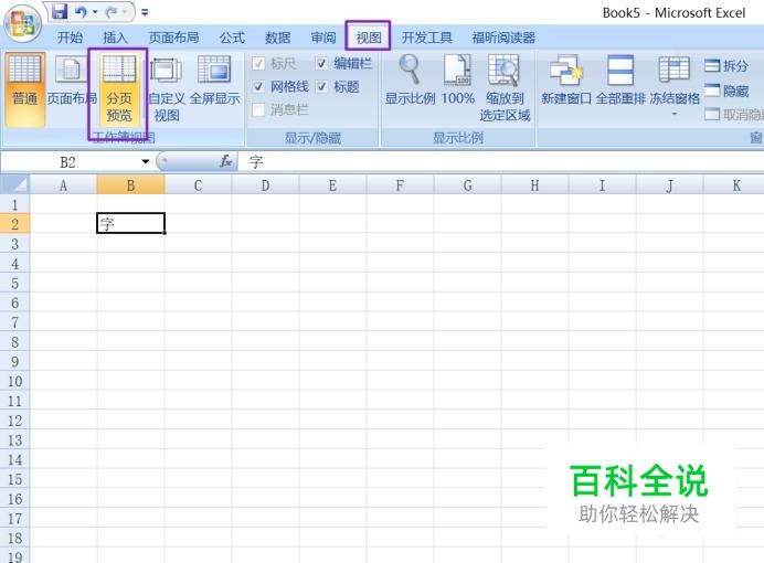 点击工具栏中的视图,然后点击分页预览;