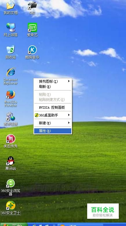 第一步,鼠标右键点击桌面空白处,会弹出如图的对话框,我们点击一下最下边的“属性”。