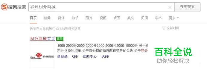 首先,使用搜索引擎搜索“联通积分商城”关键字,打开中国联通积分商城网页。
