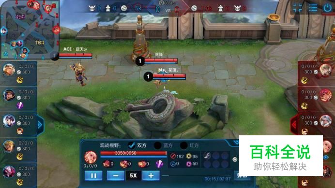观战界面最下面有一个进度条,我们可以点击快进(+-来控制速度)我们也可以点击暂停,等到我们想要看了再去点击播放按钮的三角形来继续播放。