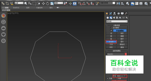 首先,在顶视图建一个多边形,半径50mm,边数10。
