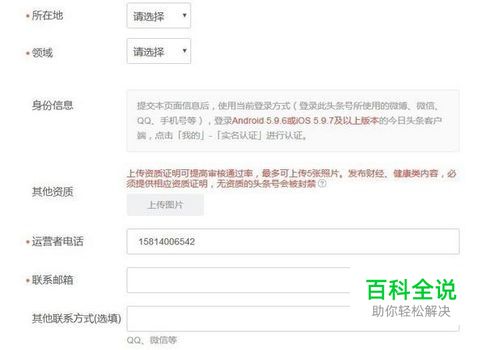 进入主页点击右上角,然后点击头条号进行注册,填写手机号,选择类型、入驻资料等