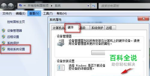 iPhone连接电脑无法显示的一般处理方法: 一,首先检查数据线是否完好,建议换一根原装数据线试一试。 二,然后检查apple mobile驱动是否正常,具体操作方法: 1、右键“我的电脑”--高级系统设置,在硬件选项下,点击“设备安装设置”。