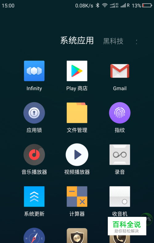 打开360 N5手机桌面中的系统应用文件夹