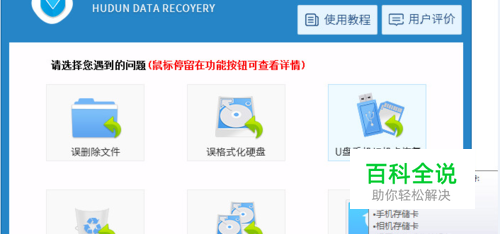安装工具完成之后打开,在六个功能板块里头选择“U盘手机相机卡恢复”恢复模式。