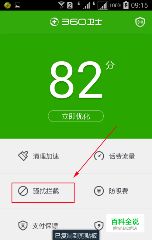 点击“骚扰拦截”,如图所示。