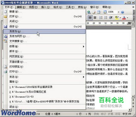 怎样在Word2003中使用“另存为”命令保存文档