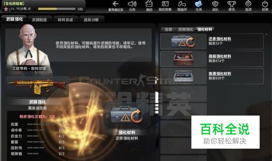 +0至+3 基本都是用 普通强化材料 强化 目的:打造自己想要的强化属性 (也就是说 +3时,那3点属性都必须是你想要的,不行的话就洗了,或者继续用普通强化材料加,如果不小心+4了还是存在废点,那就毫不犹豫的,洗了它!) +3至+4 就要用高级强化材料强化 情况1:没有存在废点 那么接下来的属性就用高级强化材料强化至+5 情况2:存在废点 那么就使用普通强化材料 如果掉废点 那最好(这时是+3状态) 继续用高级强化材料 如果掉好点 那你就只有洗了吧(这时候是+3状态 2好点1废点) +4至+5(如果不小心+5的话,(3好点2废点)两种方法:用高级强化材料提升至+6或者洗掉(自行取舍,因为这里真的很难取舍)) +5至+6 这里必须用高级强化材料没话说 情况3:5好点1废点 我建议的方案是 单属性还原材料洗掉废点 然后用3个完美强化材料直接+8 情况4: 6点全是好点 那么 直接使用 2个完美强化材料至+8 特别强调: 1.+3前的属性最好是分散开来的属性(不是也不必要强求,只是用完美材料可能就需要同种类的多一些) 2.为了节约零花钱,代价自然是多消耗游戏币(指游戏里的钱 也就是金币) 3.强化不是一朝一夕的事情,不要一直强化,可以加到好属性就停手,然后可以改天在强化,也许明天,也许下个星期,也许其他某一时间 4.保持良好心态最重要~!(这肯定必须一定绝对是最重要的!!) 5.一把枪最多使用完美材料不要超过3个(土豪直接+8都用完美材料的可以无视) 6.只有非常有必要强化(强化后比未强化的属性差别非常大)的枪才使用完美材料 下面列举值得使用完美强化材料的枪 1.末日骑士(末日金骑) 2.追击者(黄金追击者) 3.咆哮飓风(金哮飓风) 4.爆炎剃刀(如果强化不到连射,仅完美连射强化材料) 5.巨蟒之牙 6.掠食者(黄金掠食者—不知道可不可以强化) 7.毁灭者(圣诞毁灭者、黄金毁灭者 其实可用可不用) 至于其他枪需要强调下 1.巴雷特(圣诞巴雷特) 这个只要不强化后座即可,其他属性看个人情况 2.帕克·黑尔 除了伤害、命中和填弹必要强化,其他属性见仁见智 3.狂怒骑士(狂怒金骑) 这个主要强化伤害连射就好,其他属性看个人习惯,命中可有可无 4.咆哮怒焰(咆哮金焰) 原版都已经很厉害了,强化自然更厉害,不需要拿完美强化材料来砸,后座至少+3就行 5.汤姆逊 这个再怎么强化估计你也很少用..拿来为完美材料做贡献吧 +8后就行.. 6.灼热剃刀(黄金剃刀) 直接+8 因为这个大概只有 团竞和生化用吧?尽量往伤害和连射强化 7.退魔圣焰(退魔金焰) 基本同6. 8.眼镜王蛇 个人建议 伤害、连射、命中 个人觉得你会宁愿用噬魂、沙鹰、荒漠金鹰 也不会用它吧? 9.鲁格(至尊鲁格) 理由基本同8. 外加个 重量 10.K3 这个灾变的默认枪,个人觉得 加几点伤害和填弹就行了 11.劫掠者 貌似强化再怎么好,也不会见得你回去用它(你肯定去选择毁灭吧) 12.裁决者理由同11. 另外 个人认为 强化伤害和子弹 对哪一把枪都无坏处吧?(都不是废点)只不过某些枪的有些属性需要比这些重要罢了 比如: 生化党的53独裁末日(别人不稀罕强化到伤害去) 团战的追击者 (别人不稀罕强化到填弹) 等等一些特例 所以,某些枪支 能强化到伤害和填弹的,个人觉得,不必要使用单属性还原材料洗掉,有这些点,都算是枪的能力的提升嘛~!