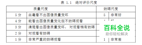 【主观评价方法】 国际上已有成熟的主观评价技术和国际标准,例如 ITU-T Rec. P.910规定了多媒体应用的主观评价方法;ITU-R BT.500-11规定了电视图像的主观评价方法,就视频质量主观评价过程中的测试序列、人员、距离以及环境做了详细规定。主观质量评分法(MOSMeanOpinion Score)是图像质量最具代表性的主观评价方法,它通过对观察者的评归一判断图像质量。而主观质量评分法又可以分为绝对评价和相对评价两种类型。 绝对评价是将图像直接按照视觉感受分级评分,表1.1 列出了国际上规定的5 级绝对尺度,包括质量尺度和妨碍尺度。对一般人来讲,多采用质量尺度;对专业人员来讲,则多采用妨碍尺度。 相对评价是由观察者将一批图像从好到坏进行分类,将它们相互比较得出好坏,并给出相应的评分。相对尺度如表1.2 所示。