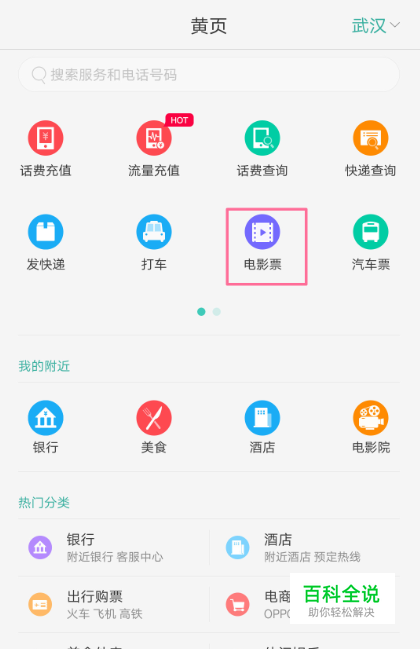 问题一:心仪的她突然想看电影,黄页来搞定~ 1、点击桌面的拨号软件--进入黄页,点击“电影票”。