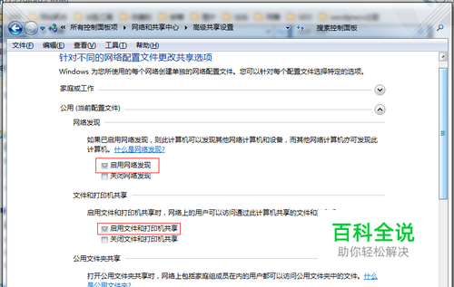 启用共享 控制面板 – 网络和共享中心 – 更改高级共享设置,将图中的几个选项选中,保存。