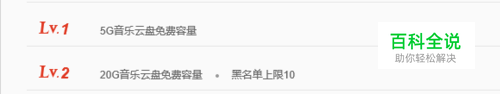 LV3,40G音乐云盘免费容量黑名单上限10随机获得价值100~400积分的积分券 Lv4,40G音乐云盘免费容量黑名单上限10
