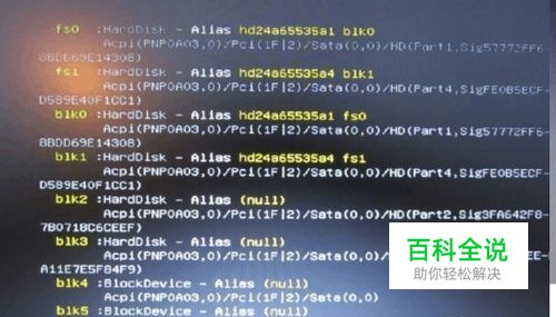 在shell> 后找到含有usb 项输入前面黄色的字符 FS0 fs1 如果不确定 可以输入 "fs0:",注意:不能省略,可以用ls命令查看是否就是优盘,找到后